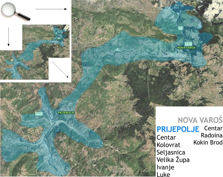 sa svim prigradskim naseljima, pripadajućim selima i okolinom.